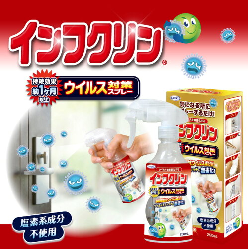 ウイルス対策スプレー インフクリン 250ml [ インフルエンザ インフル 対策 ウイルス対策 ウイルス 除菌 スプレー 抗ウイルス 安心 安全 除菌 スプレー 感染 マスク 即効性 予防 お子様 ]