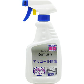 商品情報 販売名 強力除菌 LaLaLa Remush 高濃度 アルコール 除菌スプレー 内容量 450mL 商品説明 ・高濃度70%以上のアルコールでウイルスを強力除菌。